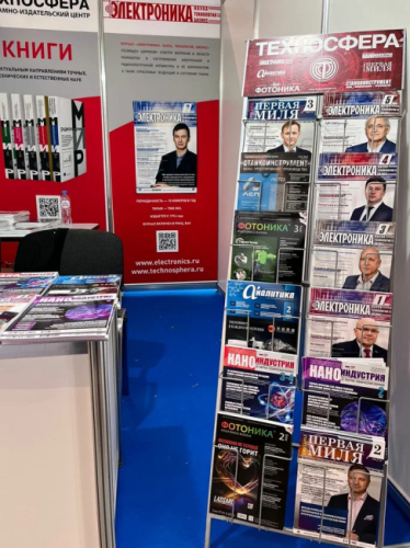 На стенде издательства «Техносфера» представлены все наши свежие выпуски журналов: Электроника:НТБ, Наноиндустрия, ПЕРВАЯ МИЛЯ, Фотоника, Аналитика и Станкоинструмент.